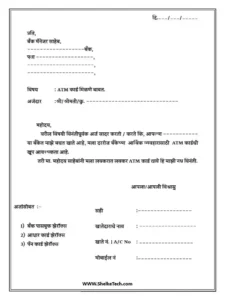 ATM Card साठी अर्ज नमुना (Format)